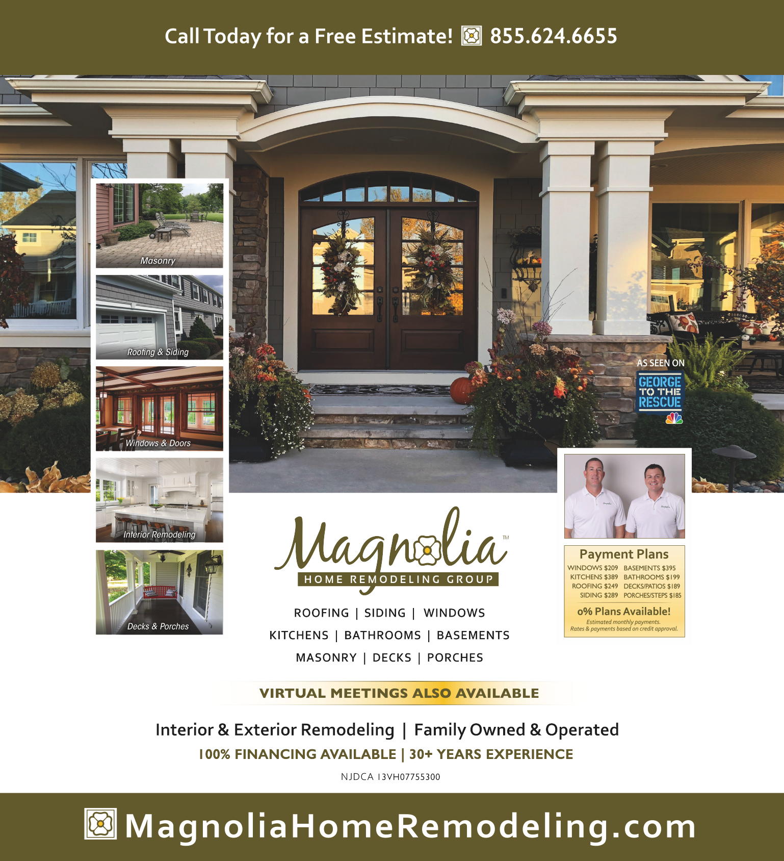 Magnolia Home Remodeling Group thanks you for considering us for your remodeling project and appreciates the opportunity to earn your business. We are a family owned and operated home remodeling company offering both interior and exterior renovations throughout New Jersey. Our goal is to build a strong and lasting relationship with each of our customers, and with that in mind we bring quality workmanship and materials and a commitment to success to each project we are awarded. With a proud reputation of successfully managing thousands of projects , the entire Magnolia Team of planners, project managers, installers and owners pledge to provide a high level of communication and customer service to every home we remodel. We invite you to enjoy this site that showcases some of our work and services and thank you again for considering our Magnolia!Services
